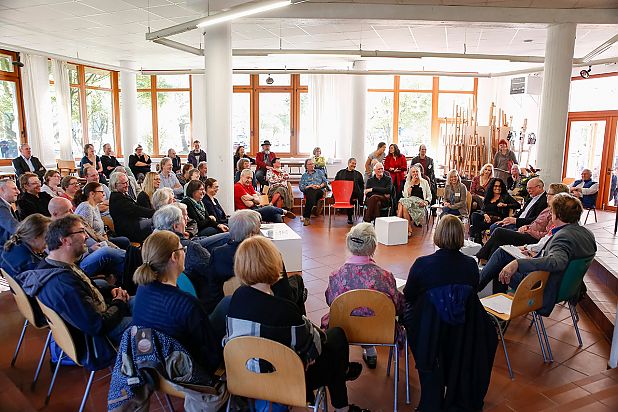 In einem Podiumsgespräch blickte die Hochschulleitung gemeinsam mit den Leiter:innen der Studiengänge auf die bewegte Geschichte der Hochschule und ihrer Vorgängerinstitution zurück, die 1967 mit der Gründung der freien Kunststudienstätte ihren Anfang nahm. Im Anschluss präsentierten Studierende ihre Projekte und gaben damit einen Einblick in die Studiengänge der Hochschule. Auf einer Zukunftsmesse wurde auf die kommenden Jahre geschaut, die sich vor allen Dingen mit der Etablierung zweier neuer Studiengänge und der baulichen Erweiterung der Hochschule als spannend gestalten wird. Der besonderen Beziehung der Hochschule zum Flecken Ottersberg wurde am Sonntagmorgen Rechnung getragen, als Bürger:innen in einem Erzählcafé zu Wort kamen und dabei spannende und unterhaltsame Anekdoten zum Besten gaben.