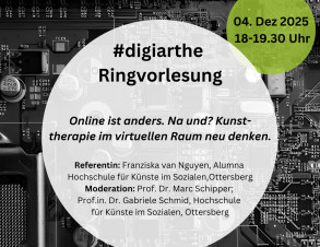 Die Arbeitsgruppe #digiarthe veranstaltet ihre vierte Vorlesung in der Reihe "Wie wollen wir werden? Die Zukunft der Künstlerischen Therapien zwischen Ethik und Innovation".