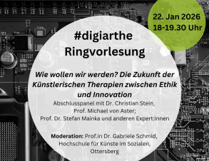 Die Arbeitsgruppe #digiarthe veranstaltet ihre finale Vorlesung in der Reihe "Wie wollen wir werden? Die Zukunft der Künstlerischen Therapien zwischen Ethik und Innovation".