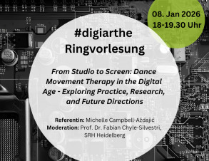 Die Arbeitsgruppe #digiarthe veranstaltet ihre sechste Vorlesung in der Reihe "Wie wollen wir werden? Die Zukunft der Künstlerischen Therapien zwischen Ethik und Innovation".